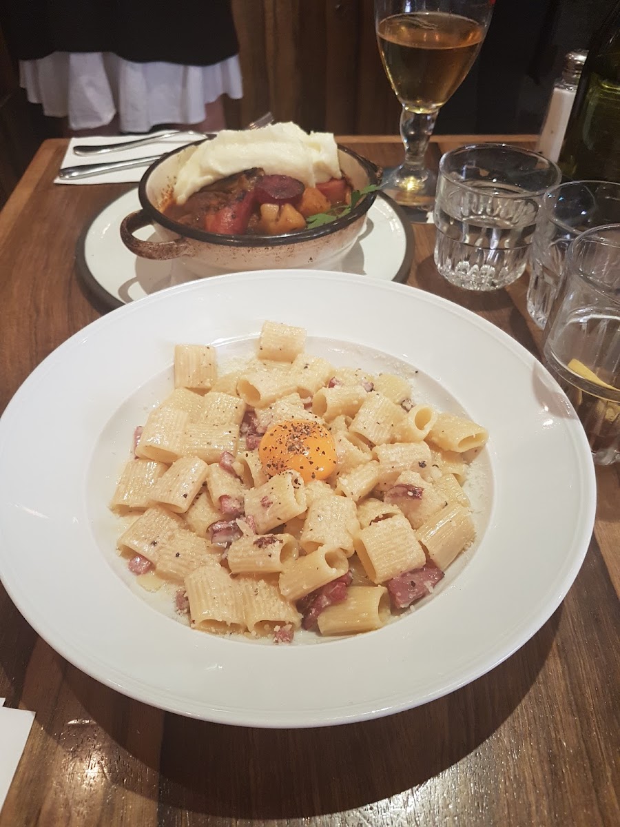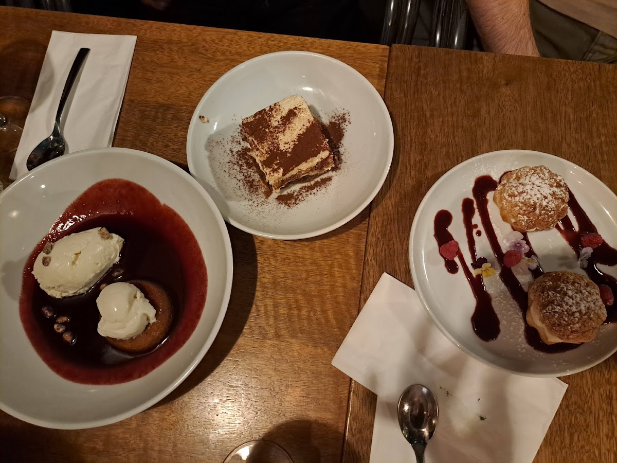We were a party of 4 for lunch in a sunny day. We reserved a table instead which was wise as it was very hot outdoors. The service was great and the dishes very tasty. We ordered few salads and pasta for each and few deserts. The starter salads, Carbonara and Lasagna were very good and from the deserts we really liked the Tiramisu and the chocolate mousse. We are eating Gluten Free because of Celiac disease - there was a good amount of dishes to choose from and the service was well informative.