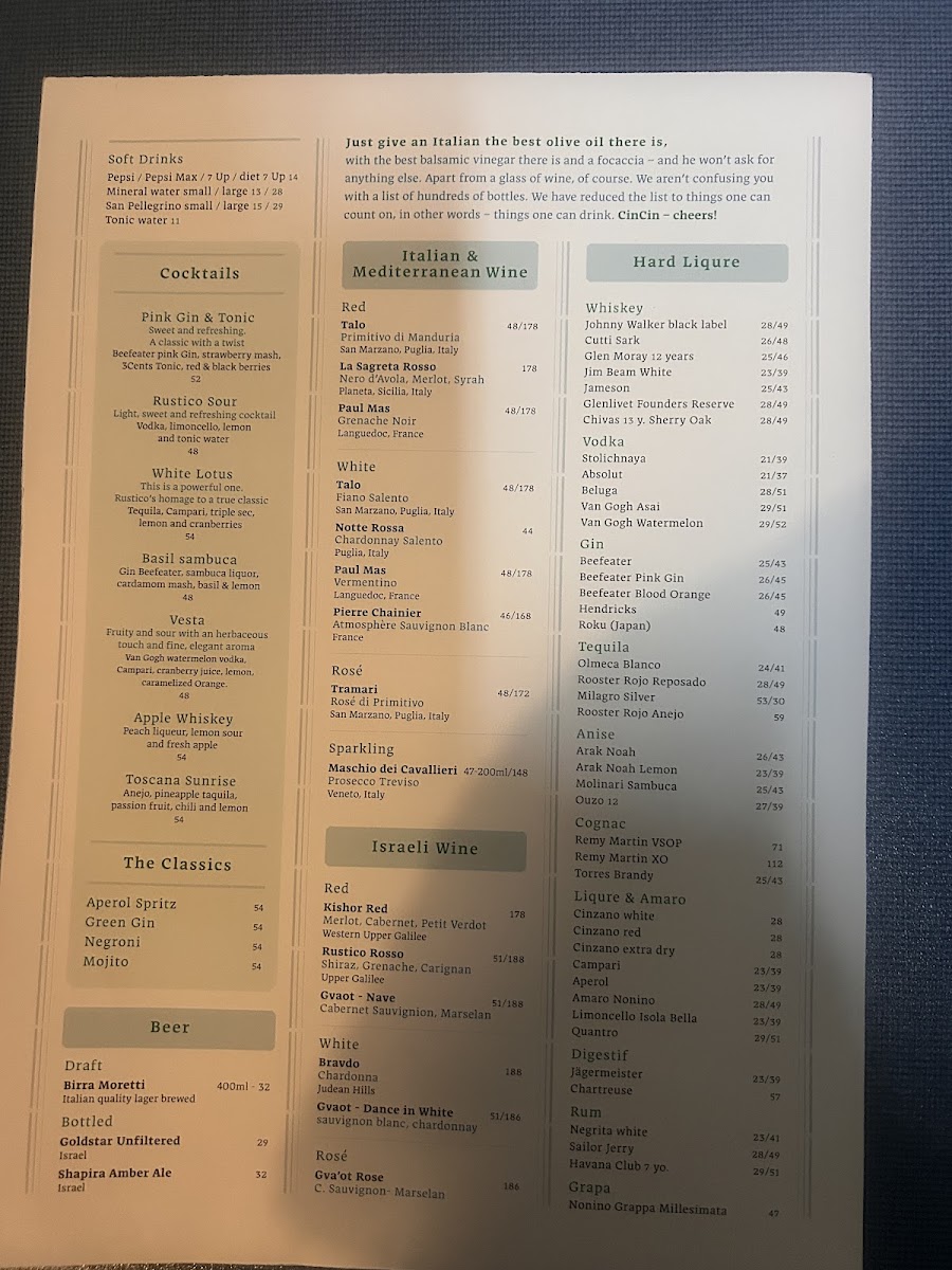 Rustico Rothschild Menu