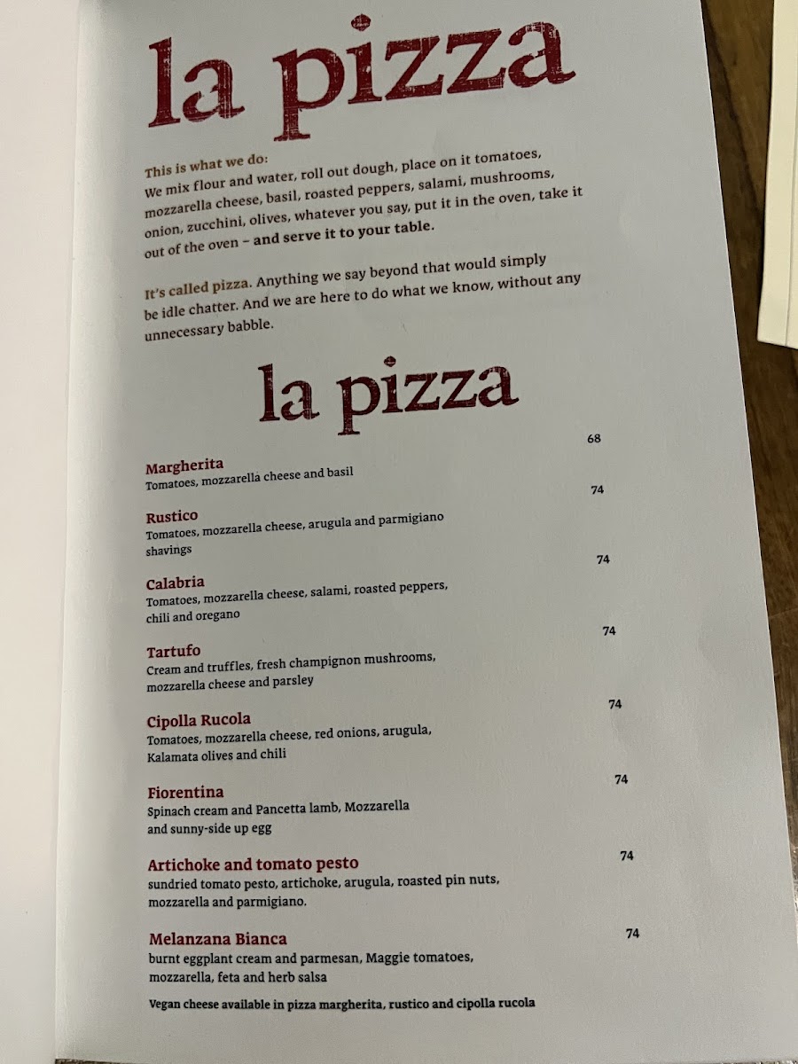 Start with lighter choices like the fresh Caprese or artichoke pizza, perfect for a casual lunch or an early evening bite. Hearty options such as lasagna, creamy mushroom risotto, or half rigatoni carbonara suit those looking for a satisfying meal that pairs well with a glass of carefully selected wine.